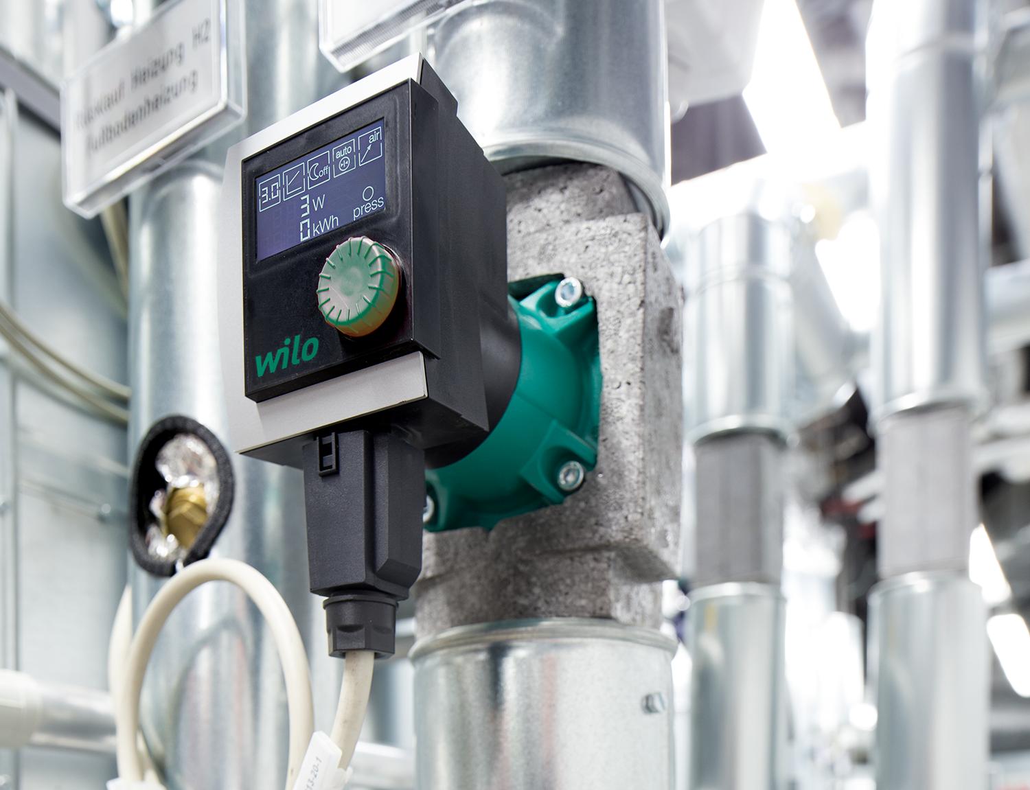 Natloper-circulatiepomp met draadaansluiting, blokkeerstroombestendige EC-motor en geïntegreerde elektronische vermogensregeling.