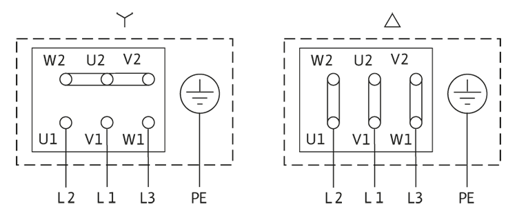 • ≤ 4 kW 230 V/ 400 V; Δ/Y