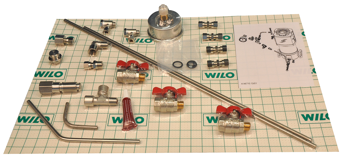 Aansluitset voor aansluiting van een laagwater-uitschakelapparaat op drukverhogingsinstallaties met één pomp CO-1 zonder toerentalregeling.