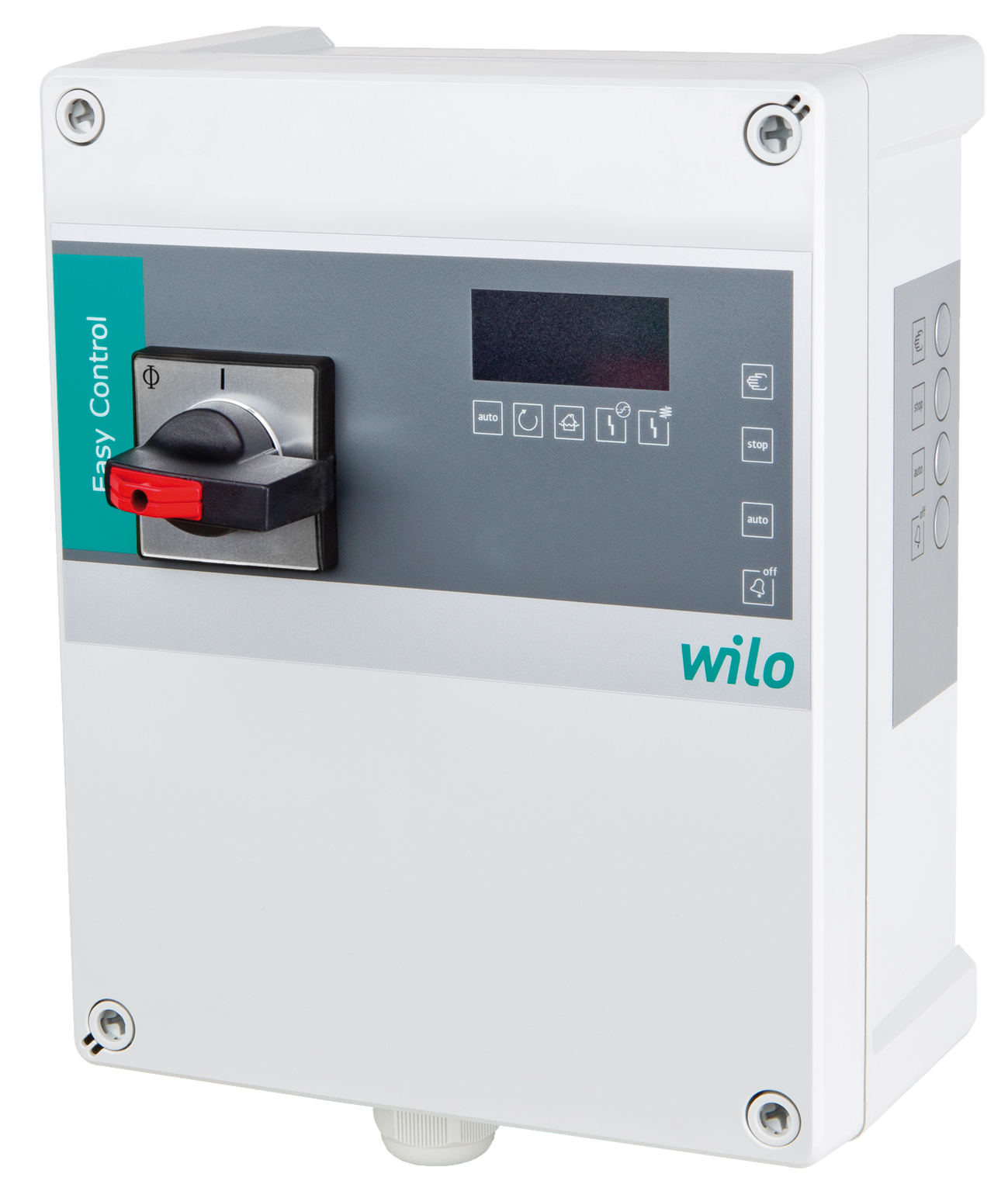 Microcontrollergestuurde schakelapparatuur voor niveau-afhankelijke regeling van een dompelpomp met analoge of digitale signaaltransmitters. Individuele parameters worden ingevoerd via een menunavigatie gebaseerd op symbolen en een bedieningstoets.