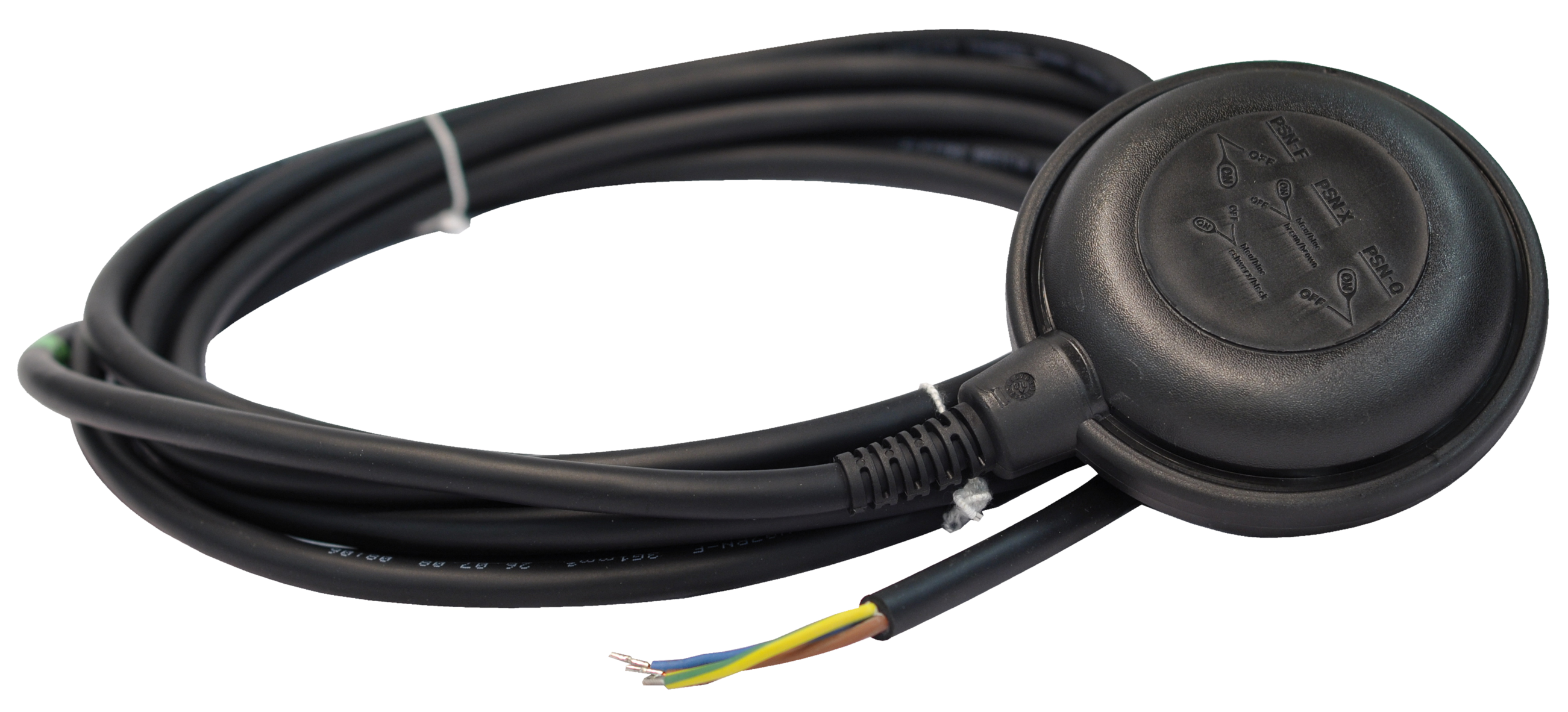 Vlotterschakelaars voor niveaubesturingen als min./max-schakelaars voor vloeistoffen die agressief zijn of fecaliën bevatten, drijven met de vloeistof mee en schakelen in gekantelde toestand. Door zijn constructie en schakelpunt kan de vlotterschakelaar slechts een zeer kleine hysteresis vertonen. Deze eigenschap kan niet worden veranderd, zelfs niet de lengte van de kabel. Om de vlotterschakelaar te kunnen gebruiken, moet een schakelapparaat met instelbare aanlooptijd worden gebruikt. Schakelen: omhoog "AAN"/ omlaag "UIT".